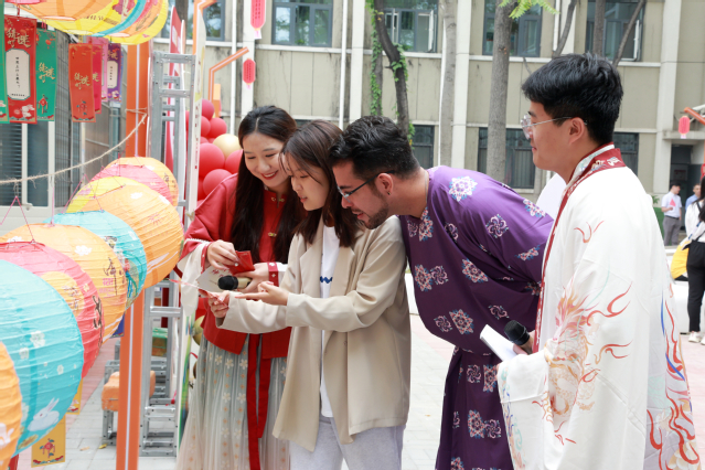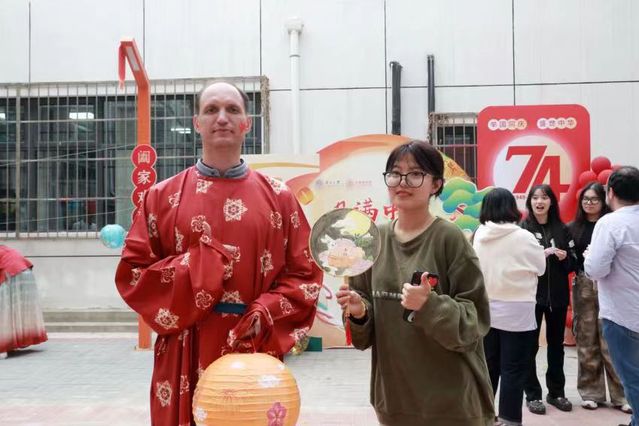 西班牙语系外教吴瑞龙身着华美的汉服,深入体验了古代中国文化,再度陶醉于中华卓越之美。吴瑞龙表示,尽管身处异国他乡,但他感受到了一份宛如家的温暖,不禁对中国传统文化的深刻底蕴感到由衷的赞叹。最后,他以中国诗句的形式,向远在国外的家人以和在中国各地的朋友献上了他的中秋节日祝愿: