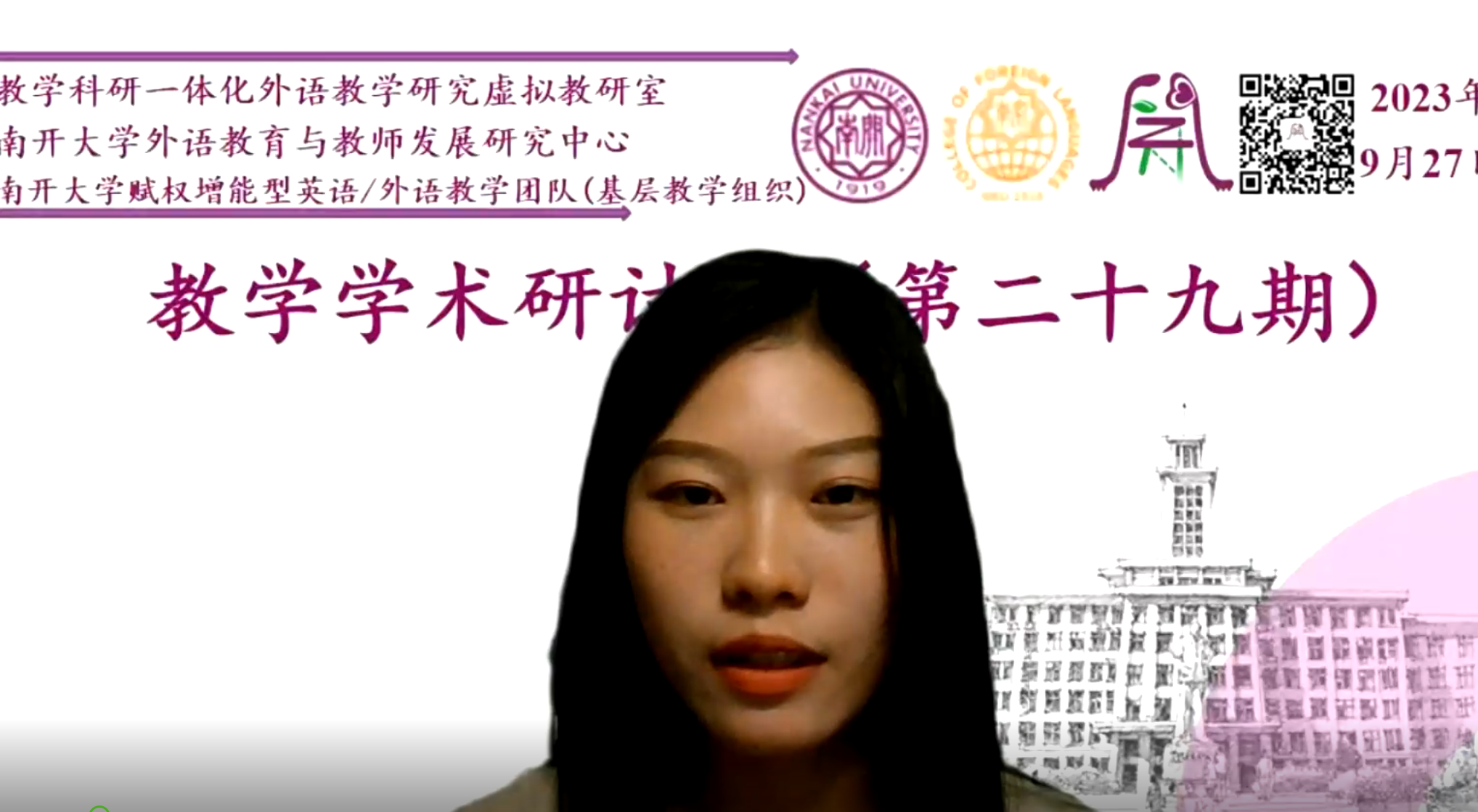 外语教育与教师发展研究中心、南开大学赋权增能型英语/外语教学团队(基层教学组织)联合举办的第二十九期赋权增能教学学术研讨会于线上准时召开。