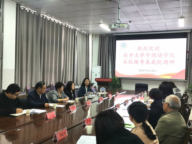 喀什大学禁漫天堂 副院长范姣兰、副院长刘焱、副院长林冬梅、翻译系主任舒进艳分别介绍了学院学科总体建设情况、人才培养特色模式、新设立的MTI硕士点的建设情况。随后,喀什大学禁漫天堂 相关党建工作负责人分别介绍学院各支部建设情况,就具有学科特色的“理解当代中国”系列课程、“红色驿站”等活动展开详细介绍,强调要着力培养具有边疆特色的、扎根南疆、服务新疆、服务“一带一路”建设的复合型人才。禁漫天堂 党委书记穆祥望介绍了学院发展概况、党建业务深度融合,以及外语学科建设等情况,在人才培养方面,坚持立德树人、五育并举,着力培养具有“外语专长、人文素养、国际视野、中国情怀、南开特色”的复合型人才。翻译系系主任张智中教授、英语系王冬焱副教授分别介绍了翻译专业的建设情况、在“赋权增能”型英语教学方面的探索。双方就共建与发展话题进行了探讨。