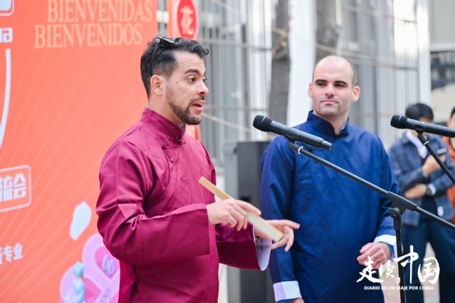 西班牙语外教吴瑞龙(委内瑞拉)和墨麒麟(西班牙)表演西语相声
