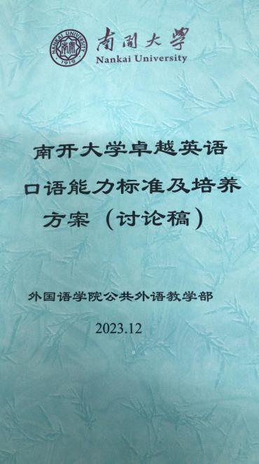 《南开卓越英语写作能力标准及培养方案》(讨论稿)与《南开卓越英语口语能力标准及培养方案》(讨论稿)聚焦在学生用英语开展有效书面、口头交流的能力,对大学英语写作、口语教学与测试具有现实指导意义。方案的实施将切实提高学生就通用话题和学术话题,参与国际性书面、口头交流的能力和信心,提升其在世界眼光、国际意识和跨文化交际等方面的综合素质,培养具有全球胜任力的南开人。