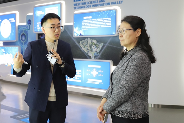 浙江省杭州市临安区宣传部部长孙超在参观前会见了我校一行,并对我校一行来访表示欢迎。南开浙江校友会会长、浙江众合科技股份有限公司董事长潘丽春带领赵美蓉一行参观了众合科技展厅,介绍了公司“智慧交通”“泛半导体”“产业数智化”“大健康”四大战略经营单元的发展历程、产业布局和应用情况。