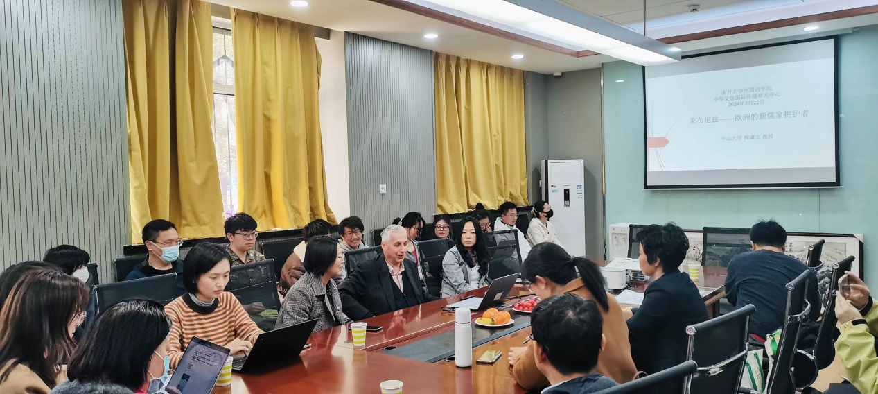 中华文化国际传播研究中心邀请,中山大学梅谦立教授为全院师生带来系列学术讲座。讲座分两场进行,第一场为“海外汉学研究漫谈”;第二场为“莱布尼兹——欧洲的新儒家拥护者”。