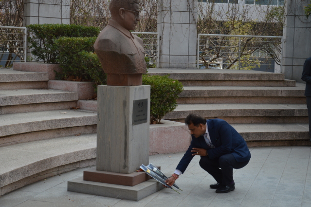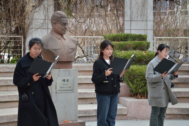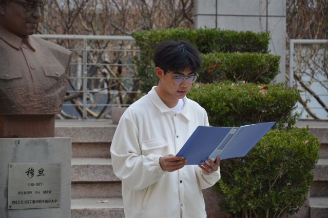 一年一清明,一岁一追思。下午四时,师生及校友代表齐聚穆旦花园,一同参加敬献鲜花仪式,纪念穆旦先生诞辰一百零六周年。仪式上,阎国栋表示,穆旦先生是著名的爱国诗人和翻译家,他的作品在浓浓的浪漫主义色彩之中饱含强烈的爱国精神,其译作也在文学翻译之中享有盛誉。穆旦先生的品格、思想、学识至今仍深深地影响和激励着一代又一代的南开学子,勉励新时代南开人接续奋斗、不断前进。