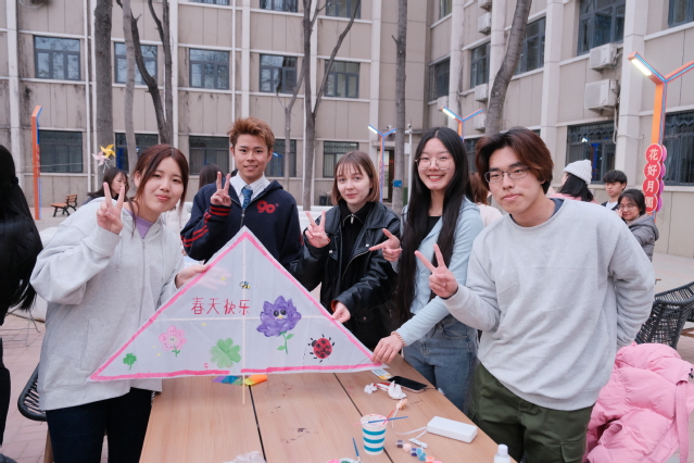 活动伊始,主持人介绍了本次活动的流程及有关风筝的文化知识,通过抽签方式,参与者被分配成各个小组,进行猜图游戏及风筝制作。每支队伍通力合作,完成风筝的组装及绘制,同学们将春花美景、卡通形象、国家文化等绘于风筝之上,制作现场其乐融融,各个风筝也独具特色,展现了创新精神与传统文化的交相辉映。整个过程不仅加深了同学们对不同文化的理解,同时也锻炼了中英文语言能力。