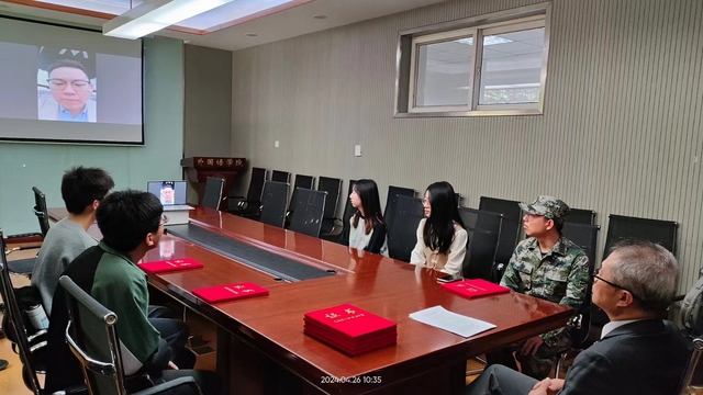 获评2024年度“博衍助学金”的西班牙语系、翻译系、德语系、阿拉伯语系、日语系、英语系10名本科生和研究生及学院办公室、校友工作办公室负责老师等参加颁发仪式。