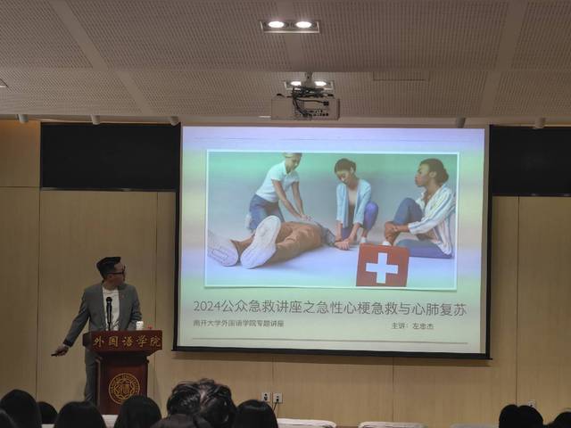 开展急性心肌梗死的急救与心肺复苏讲座,邀请美国心脏协会急救导师、欧洲复苏委员会急救导师、前天津蓝天救援队一线人员左忠杰为外院学子科普急救知识,以实用的内容与风趣的形式促进生命教育入脑入心,引导学生保护生命、珍惜生命。