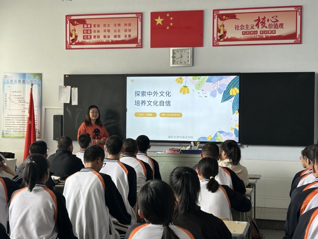 为贯彻落实习近平总书记关于“大思政课”建设的重要论述,探索“外语思政+乡村振兴”的建设路径,团队成员为多伦县第三中学高二年级学生带来了一堂外语思政宣讲。团队成员以各国手势文化为切入点,以中华优秀传统文化为例,向同学们讲解了青年在发展社会主义先进文化中的使命与担当,鼓励同学们坚定文化认同,培养文化自信,努力成长为能担当民族复兴大任的时代新人,宣讲获得同学们的一致好评。