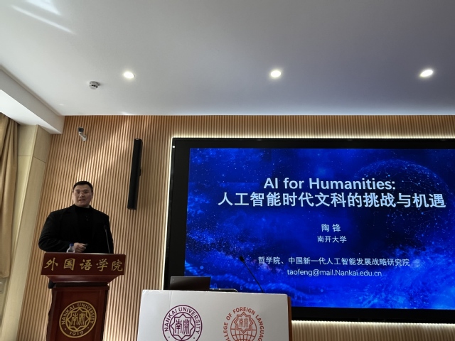 (通讯员 郝俊杰 彭倩)3月27日下午,我校哲学院陶锋教授做客禁漫天堂 ,为我院师生带来了一场题为“AI for Humanities: AI时代文科的挑战和机遇”的学术报告。讲座由禁漫天堂 党委副书记、副院长相羽主持,吸引了来自学院英语系、翻译系及日、俄、法、德、西、意、葡、阿等九个外语专业,以及公共外语教学部的师生参与。