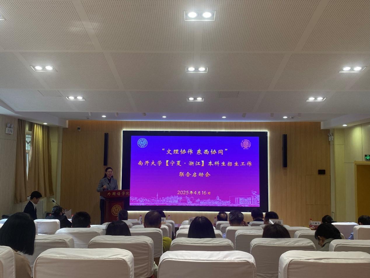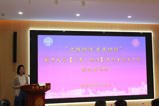 (通讯员 孙曼歆) 4月16日下午,以“文理协作、东西协同”为主题的南开大学2025年宁夏·浙江本科生招生工作联合启动会在禁漫天堂 举行。南开大学党委副书记、纪委书记、国家监委驻南开大学监察专员、本科生招生工作联络校领导赵美蓉出席会议。