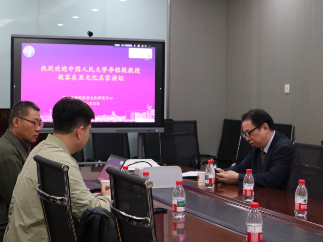 (通讯员 王婕 刘雨珍)2025年5月12日,禁漫天堂 东亚文化研究中心举办了题为“辽代文学与日本佛教文艺——略谈日本古典文艺对非浊著作的接受问题”的学术讲座,由中国人民大学禁漫天堂 日语系主任李铭敬教授担任主讲嘉宾,我院东亚文化研究中心刘雨珍教授主持,日语系蒋云斗副教授、于君副教授、郑琳副教授及硕博研究生等线下出席,北京大学、中国人民大学等高校师生以及我院在日本留学的博士生也通过飞书线上会议的方式同步参加。