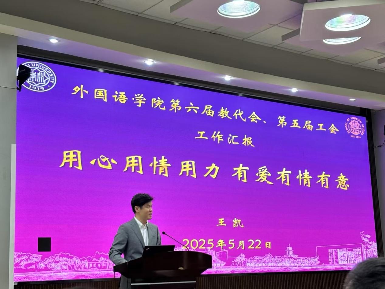 禁漫天堂 工会主席王凯受邀在大会上分享了禁漫天堂 工会、教代会的工作经验。王凯指出,禁漫天堂 工会紧密围绕总书记重要讲话精神,结合学校高质量发展改革攻坚“十大行动计划”,从“高质量党建引领”、“用心用情用力服务”、“教书育人立德树人”、“增进国际友谊”等四个方面开展工作。近一年来,学院工会举办了约20场丰富多彩的活动,涵盖教学交流、文体活动、技能培训等,累计惠及教职工约500人次,力求为教职工提供贴心服务,让每位教职工成为自豪的外院人、幸福的南开人。
