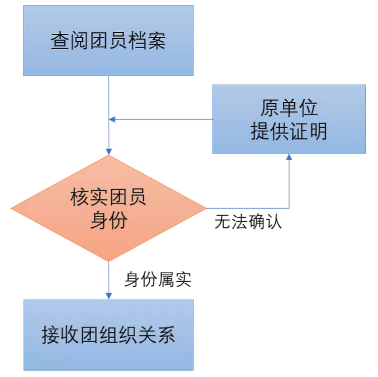 若团员身份属实,通过“智慧团建”系统,进行线上确认接收并分配团支部;档案材料不完整、无法确认核实其团员身份的,按上文所述要求,由原单位开具相关证明材料、《团员信息登记表》等,待信息核查无误后确认接收其团组织关系。
