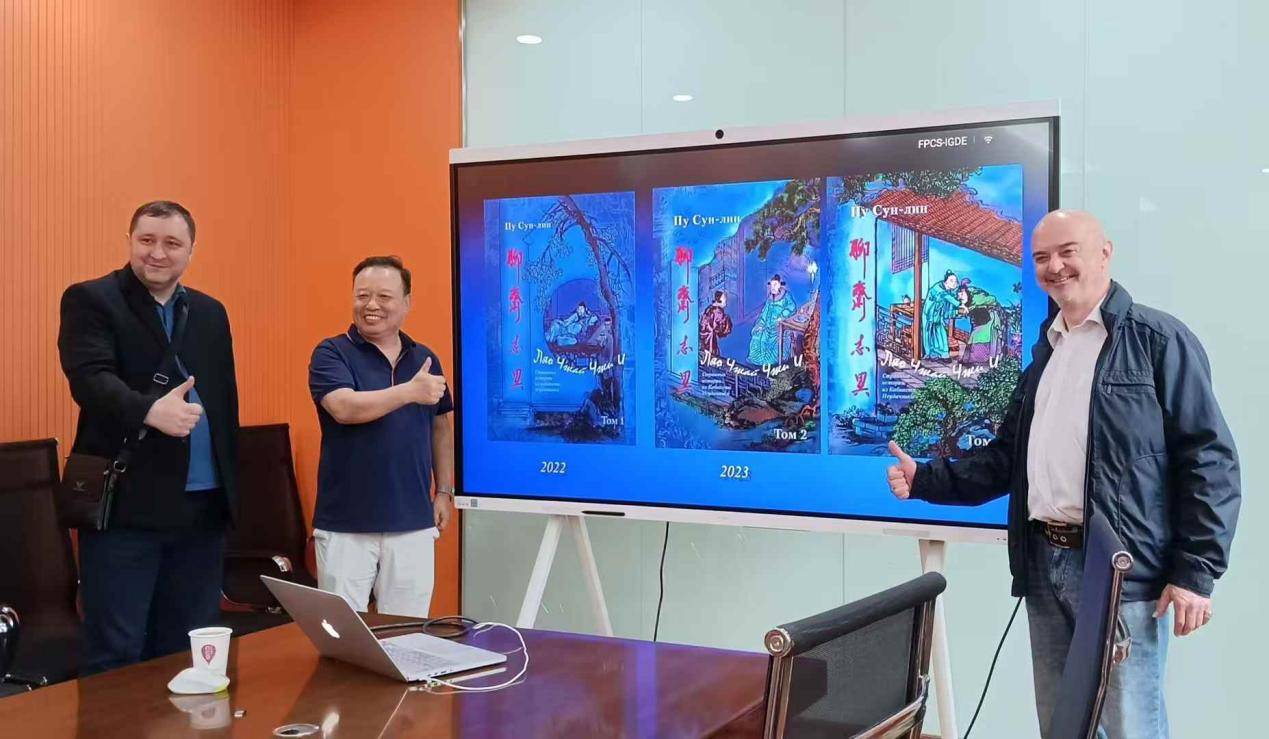 此次讲座不仅使师生了解了《聊斋志异》在俄罗斯译介传播的最新动态,也为推动中俄文明互鉴注入了新的活力。会后,索嘉威教授与阎国栋教授举行了赠书仪式。
