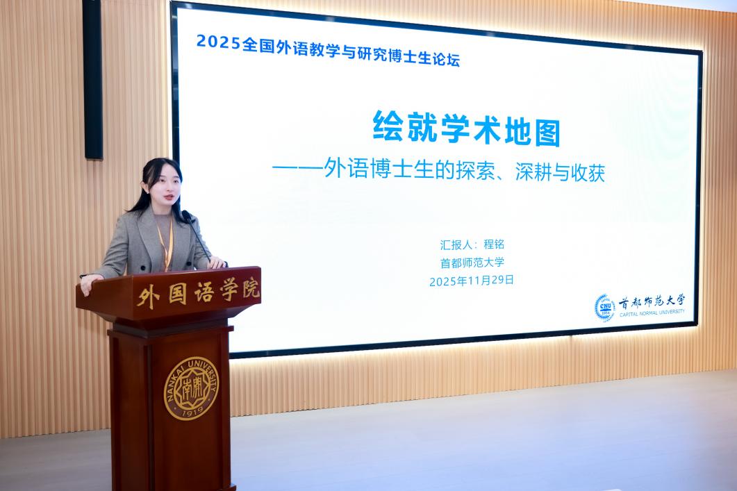 北外中国外语与教育研究中心博士毕业生、首都师范大学程铭博士则与大家分享了如何绘制外语博士生的专属学术地图。程铭博士结合个人读博经历,围绕三个阶段展开分享:一是探索阶段,聚焦于如何淬炼求学心性,确立学术志趣;二是深耕阶段,强调如何进行学术规划,突破科研瓶颈;三是收获阶段,总结成果发表、论文答辩及职业选择等方面的实践经验。希望这些分享能对同行学者的学术探索之旅有所助益。